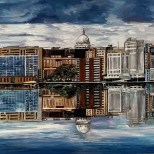 She is well known for her collection dedicated to the city of Madison, which includes famous scenes such as the spring tulips at the Capital, the farmer’s market on a summer day, the colorful chairs of the Memorial Union, the stunning new Monona Terrace, and the view across Lake Monona from Olbrich Park, among others. This collection is filled with evocative memories of those sights that make Wisconsin so special.