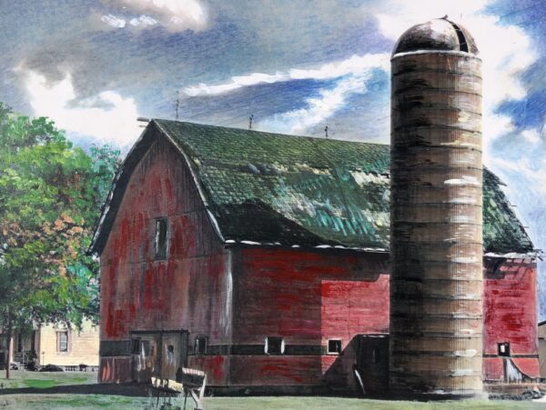 A classic Wisconsin red barn mixed media retouched print.